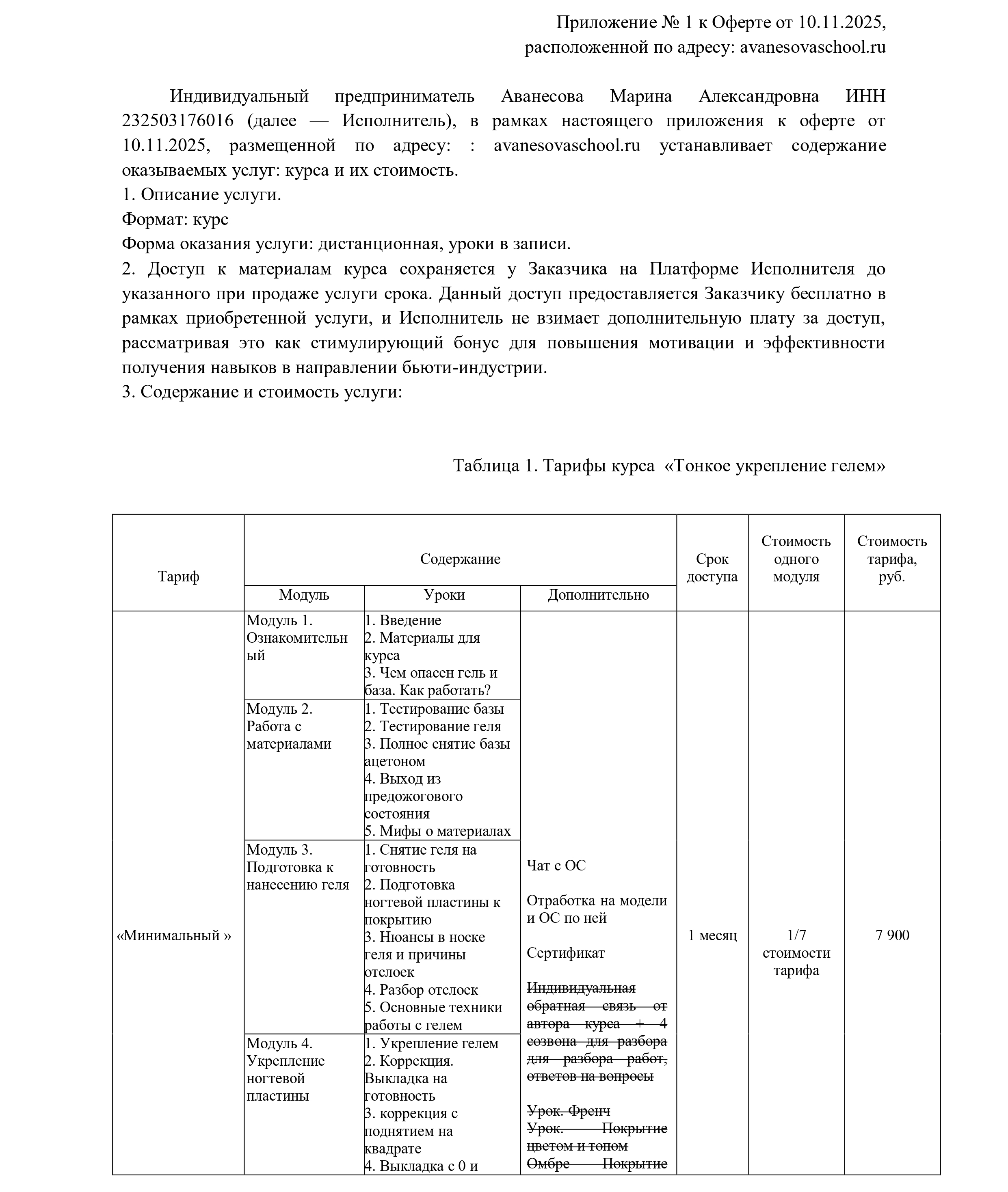 1.7. Актуальный договор-оферта всегда находится по адресу: avanesovaschool.ru.